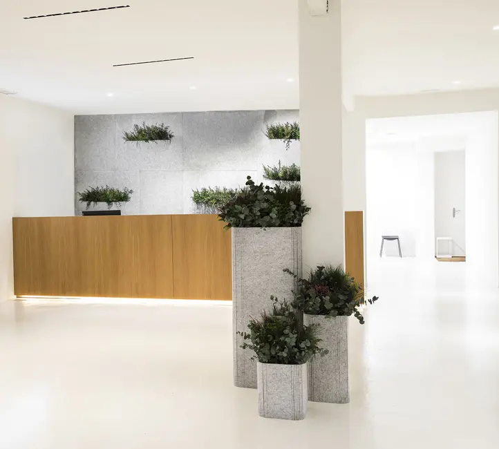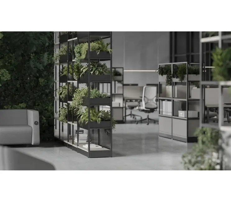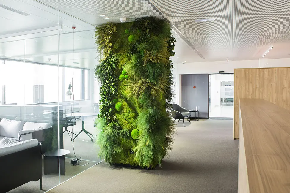 Por medio de estos elementos para crear zonas verdes de interior, podemos disponer de espacios sostenibles dentro de la oficina.
