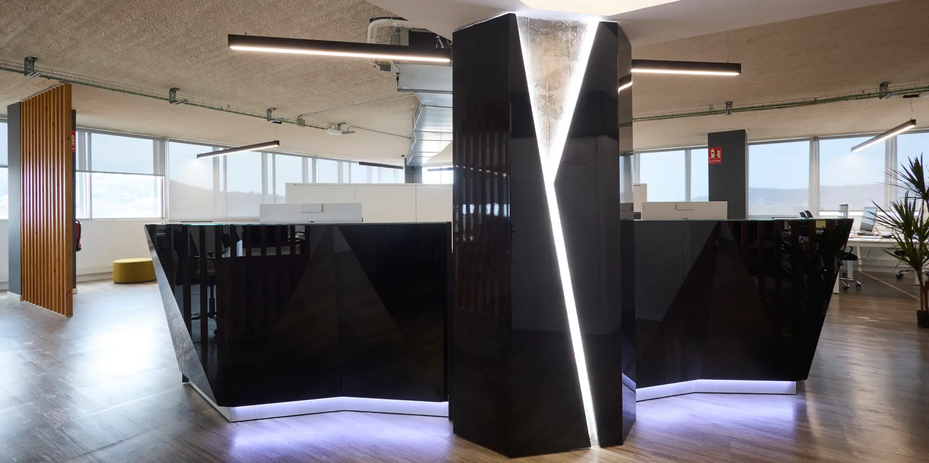Derribo de instalaciones y creación de un nuevo espacio corporativo con áreas diferenciadas para Dirección, trabajo compartido y zonas comunes.